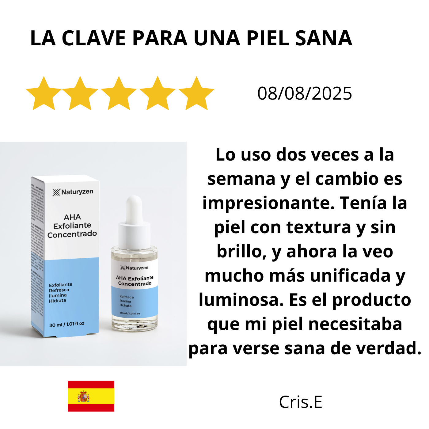Es la clave para liberar tu piel. Su fórmula con AHA actúa con suavidad para eliminar las células muertas y destapar los poros, permitiendo que tu piel respire y se muestre más limpia y lisa. Es el apoyo que necesitas para que tu piel recupere su claridad y diga adiós a las imperfecciones.