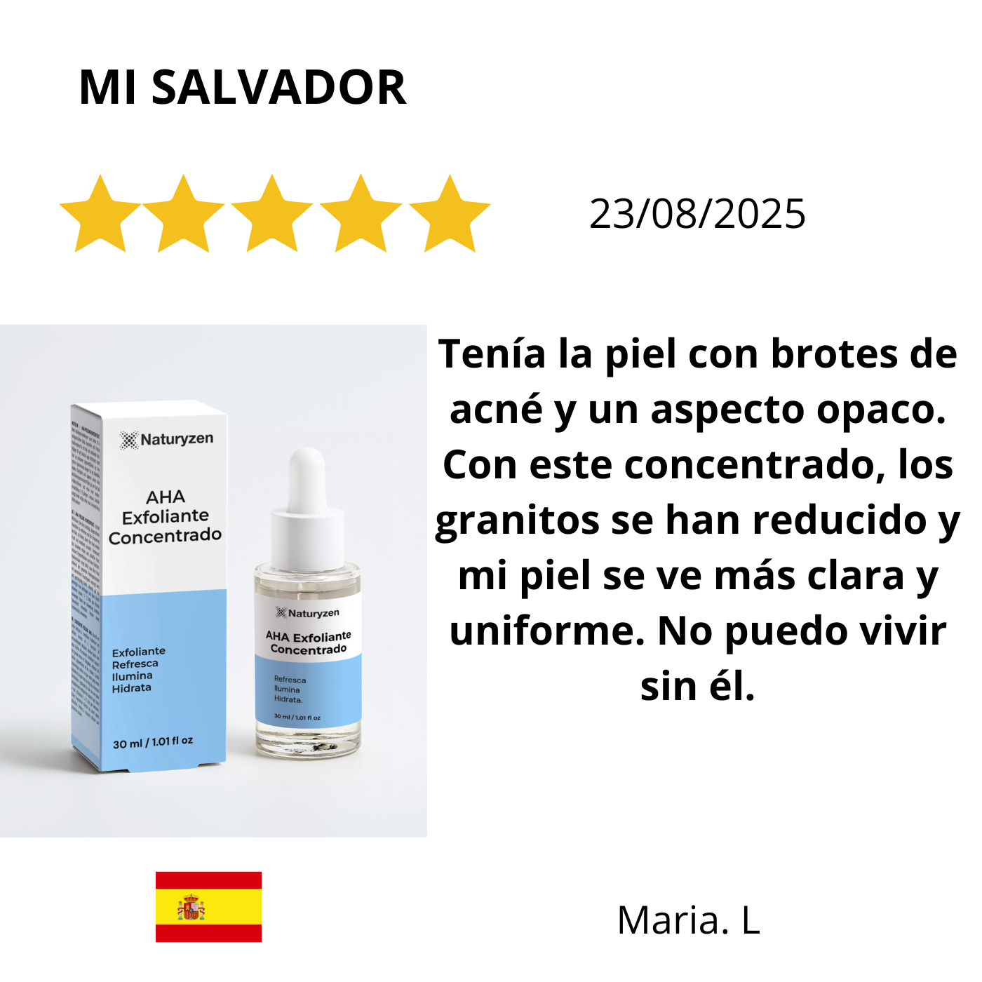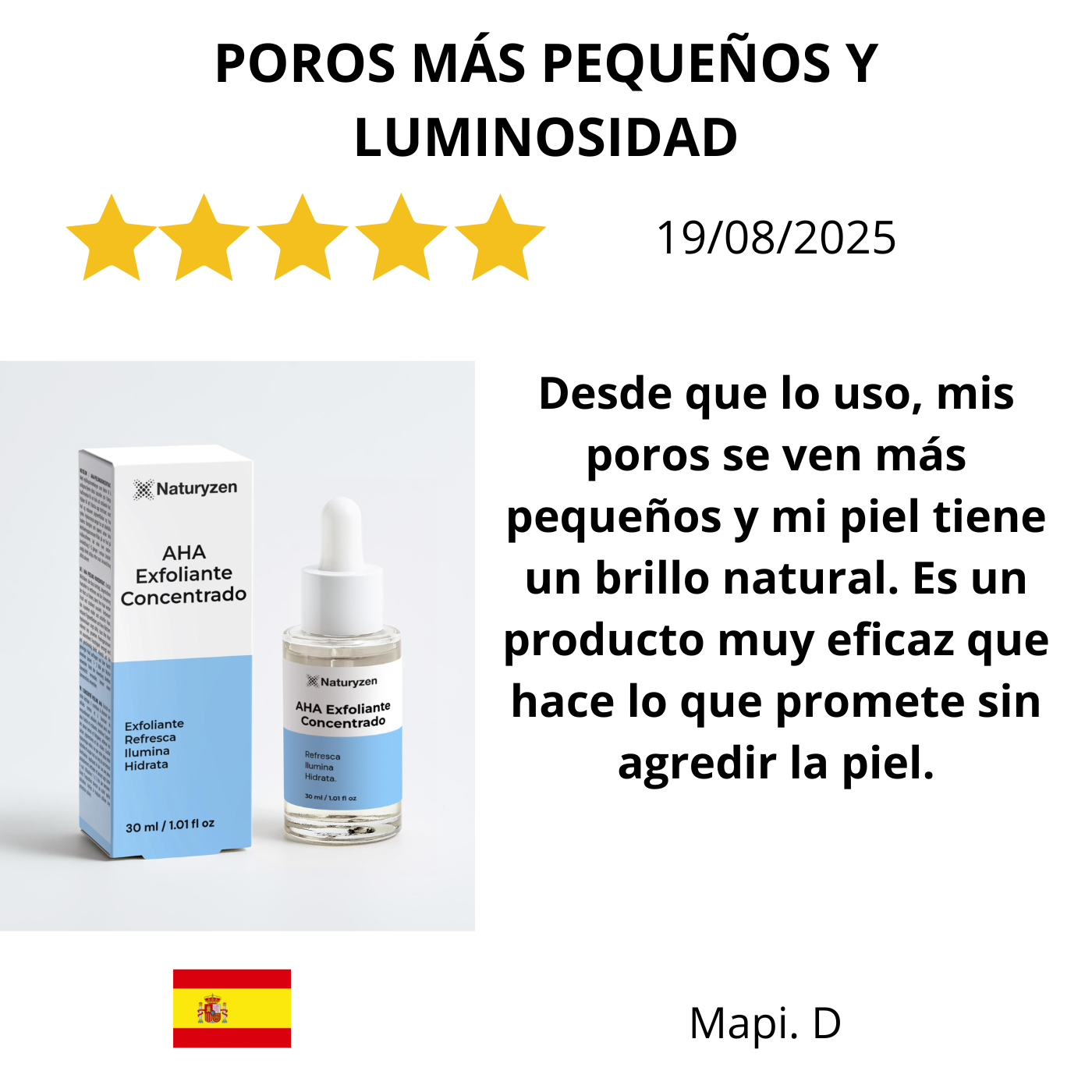 - Las Gotas de Magia: Vierte unas pocas gotas del Concentrado Exfoliante AHA en la palma de tu mano limpia.