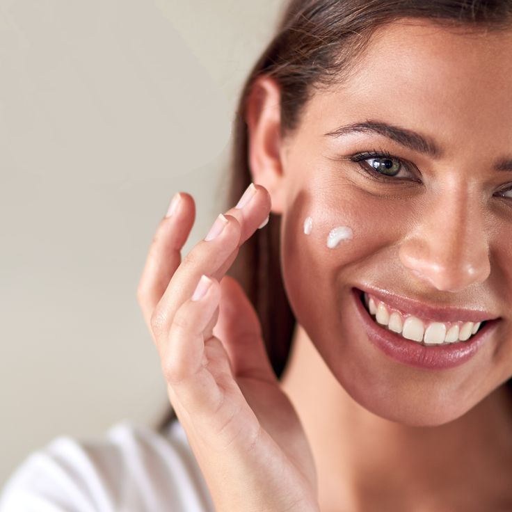- Con la piel limpia y seca, aplica una pequeña cantidad de crema del tamaño de una perla en la palma de tu mano.