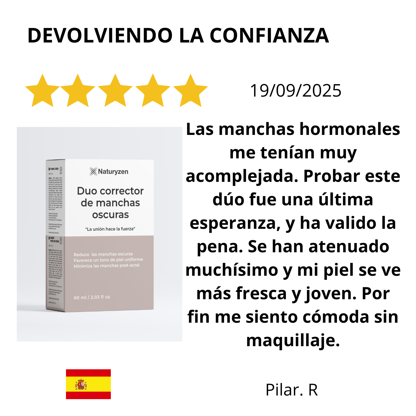 - Confianza renovada: Poco a poco, al ver que las manchas se atenúan, tu confianza se fortalecerá. Dejarás de esconderte y empezarás a lucir tu piel con orgullo.