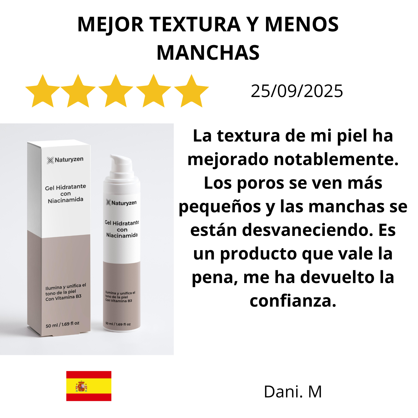 Enriquecido con un 5% de Niacinamida, una forma de vitamina B3, este gel es un auténtico multi-tarea. Se encarga de ayudar a tu piel a mantener la hidratación, a suavizar su apariencia y a reducir la visibilidad de esas manchitas o el tono irregular. Es ese producto que, sin esfuerzo, te ayuda a recuperar la confianza en tu propia piel. Porque cuando te sientes bien, se nota. Y no hay nada más bonito que una piel que irradia salud