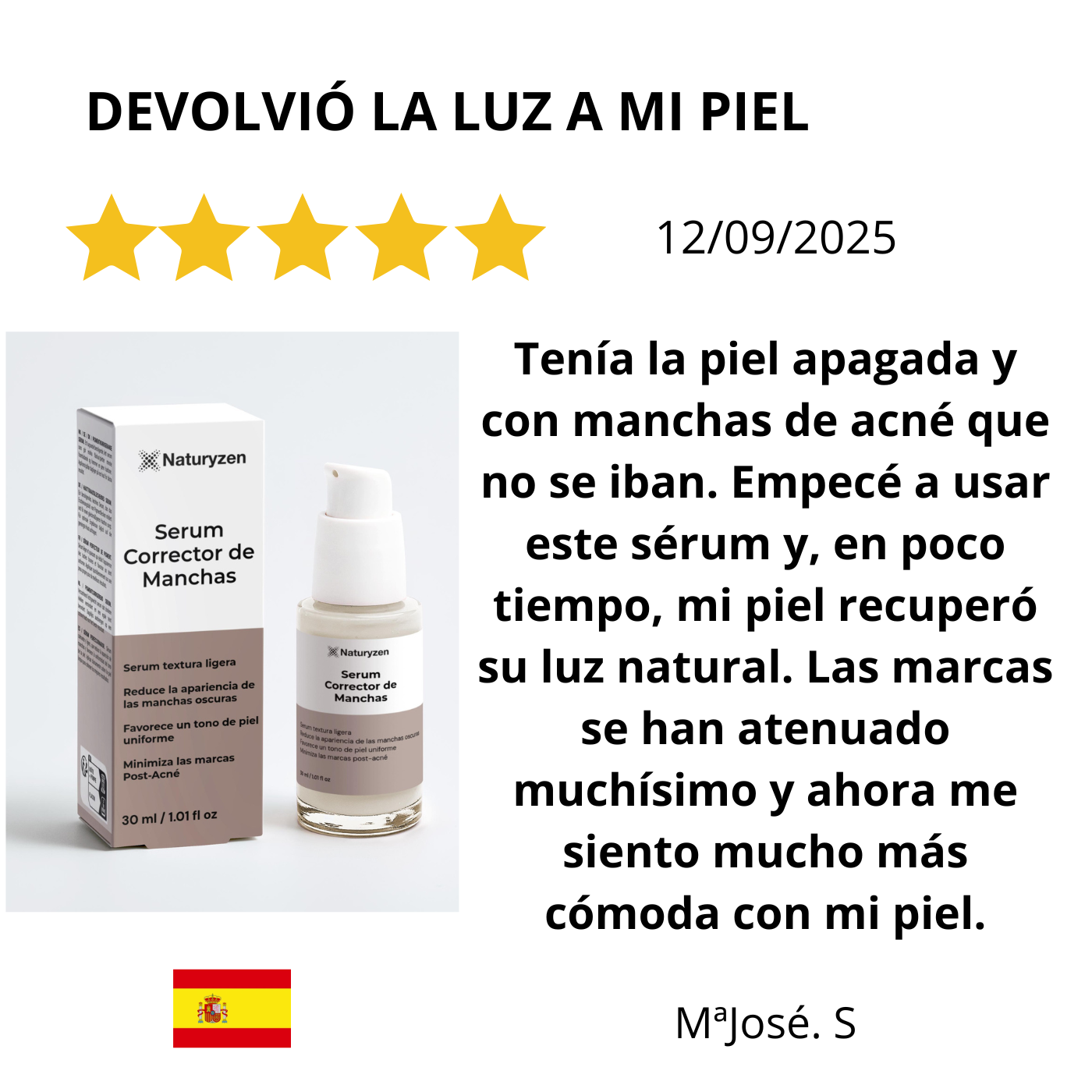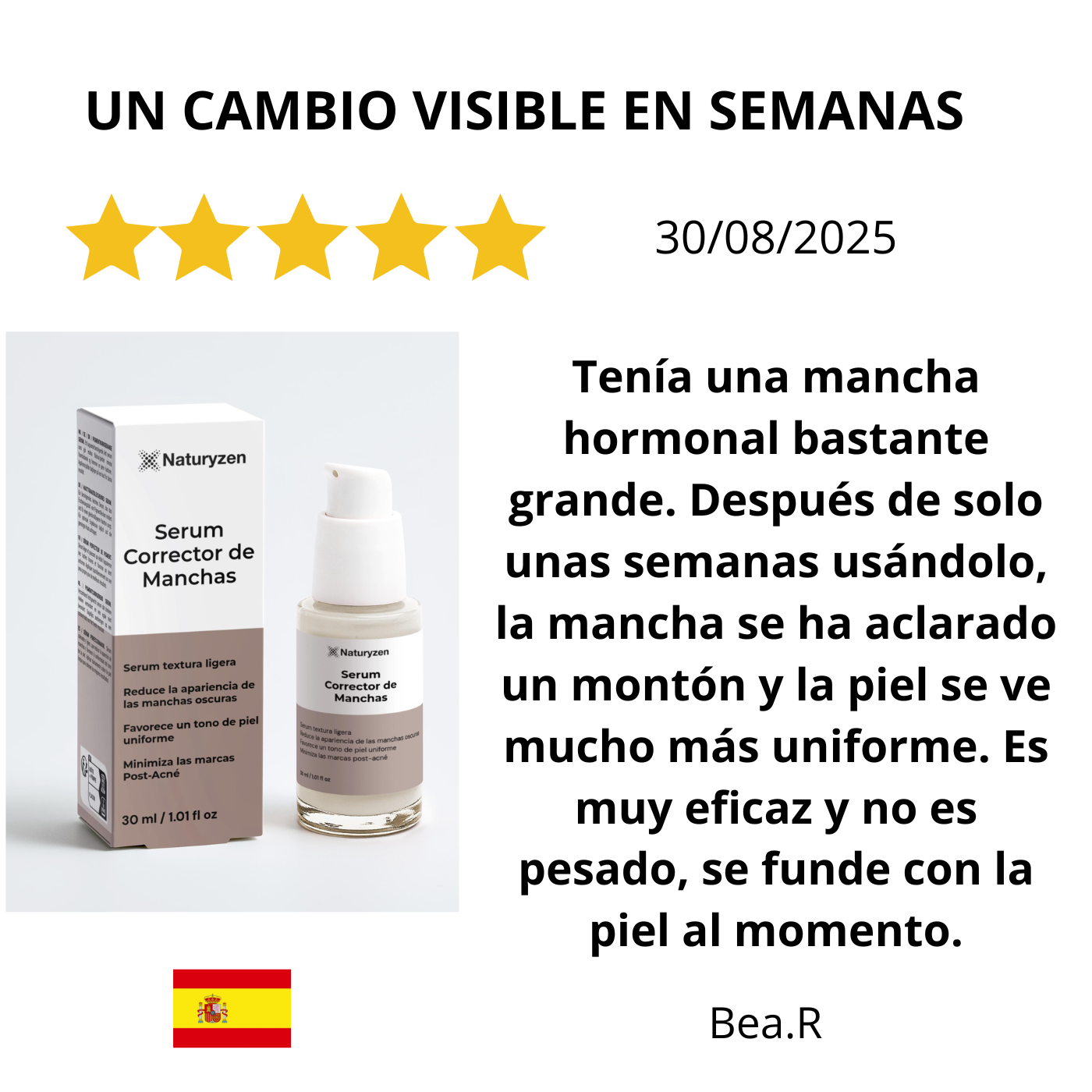 Entendemos que el sol, el acné o el paso del tiempo dejan su huella. Este sérum te ayuda a corregir esas marcas sin agresiones. Es el apoyo que necesitas para que tu piel recupere su tono uniforme y su luz natural, devolviéndote la confianza que se desvanece con cada mancha.