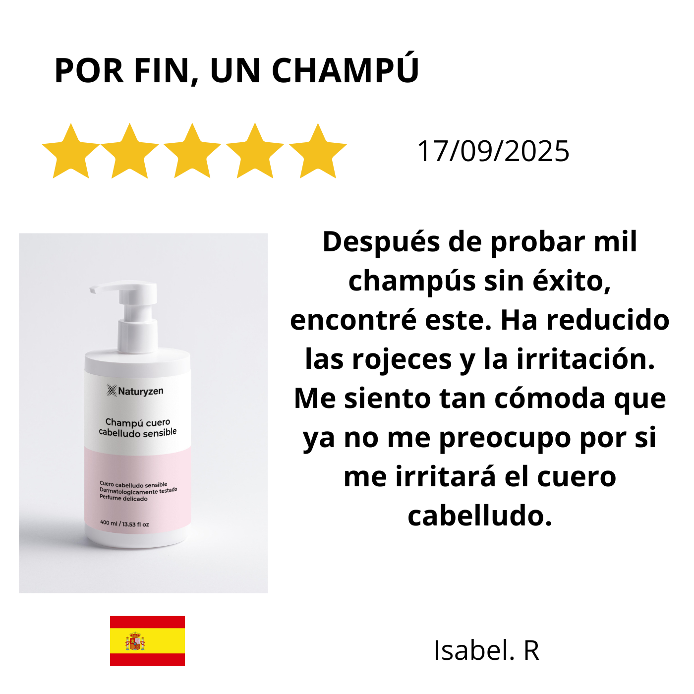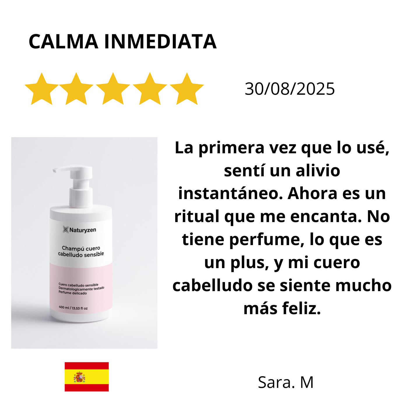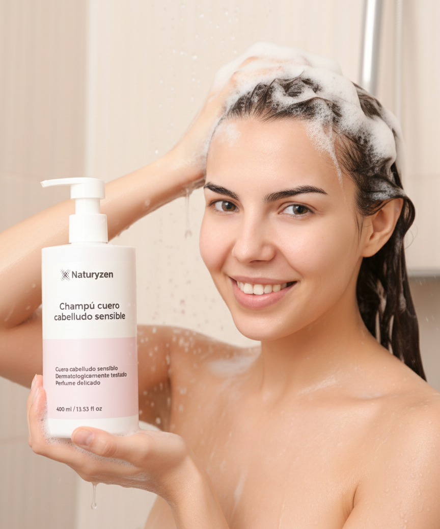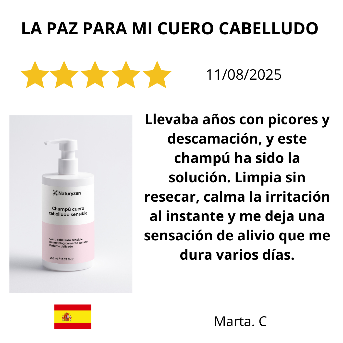 Sabemos que la sensación de picor y el malestar pueden arruinarte el día. Por eso, creamos un champú que no solo limpia, sino que también mima tu cuero cabelludo. Su fórmula suave y respetuosa te devuelve la sensación de confort y tranquilidad que tanto mereces, para que te sientas bien de la raíz a las puntas.