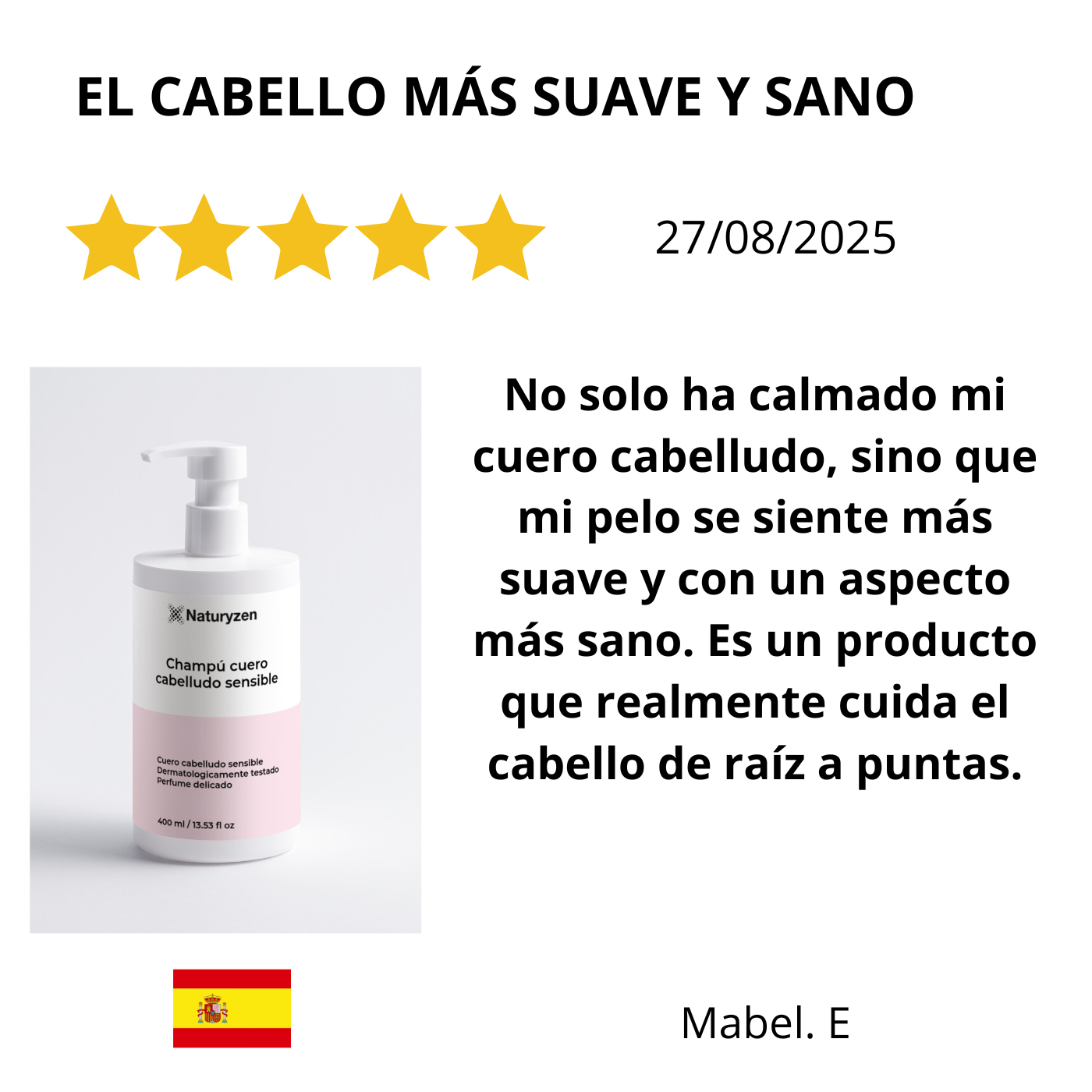 - Limpia suavemente sin irritar el cuero cabelludo.