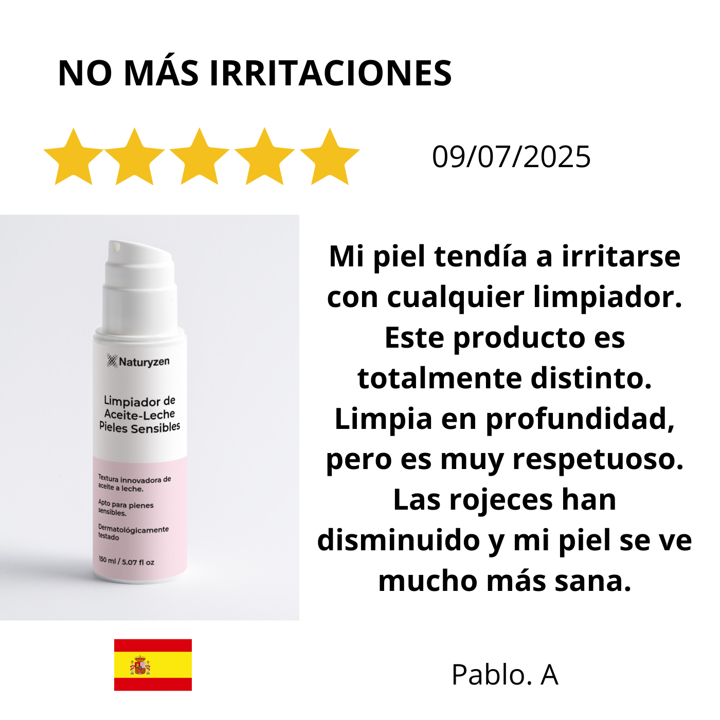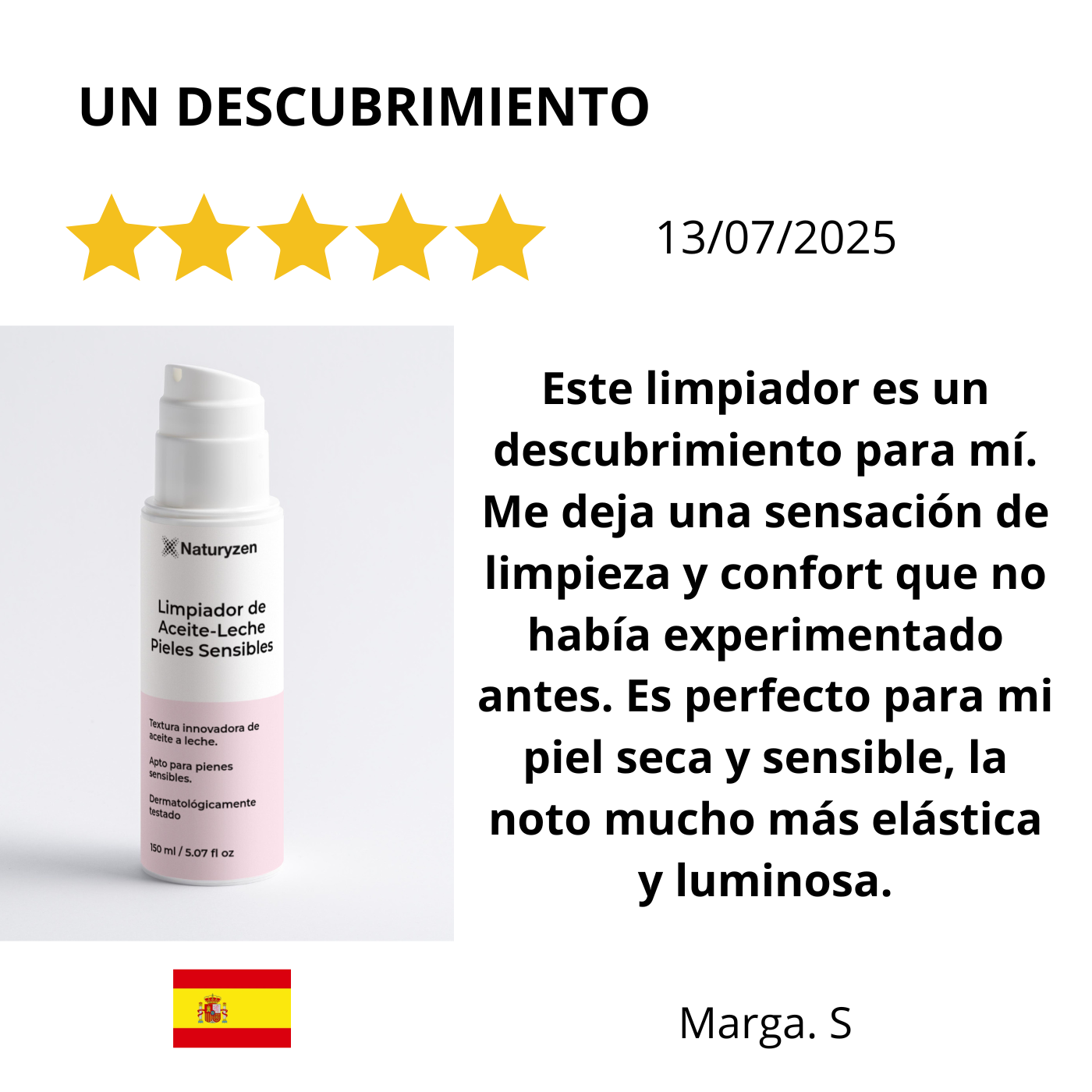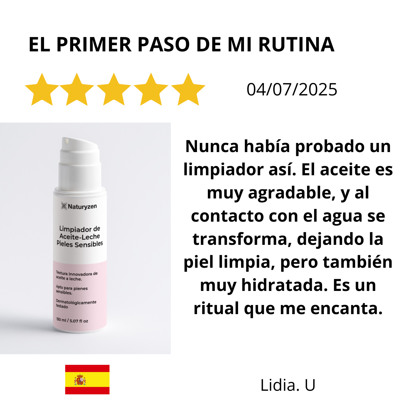 Este limpiador no es como otros. Es un aceite que, al contacto con el agua, se convierte en una leche sedosa, limpiando tu piel con una delicadeza que nunca habías sentido. Retira impurezas y maquillaje sin agredir ni resecar, dejando una sensación de confort absoluto. Es el cuidado que tu piel sensible ha estado pidiendo